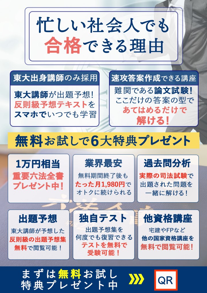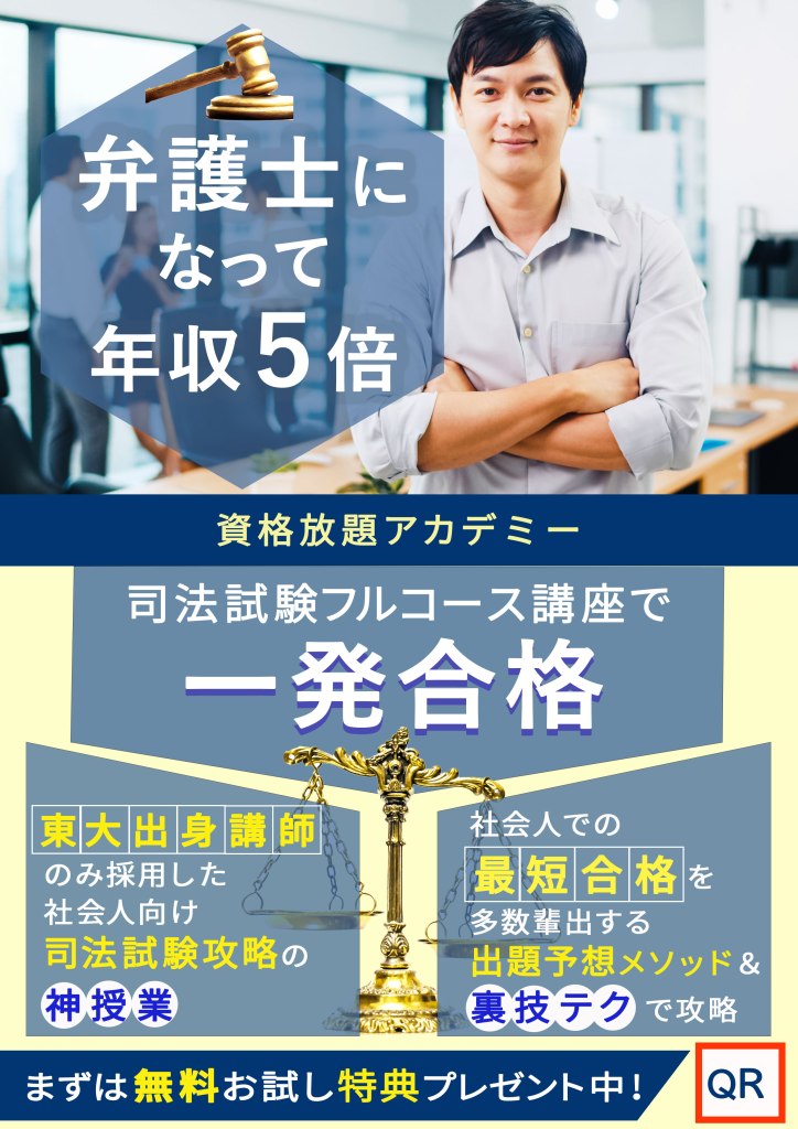 弁護士資格講座の両面印刷チラシです。信頼度を高めるブルー系で統一しています。